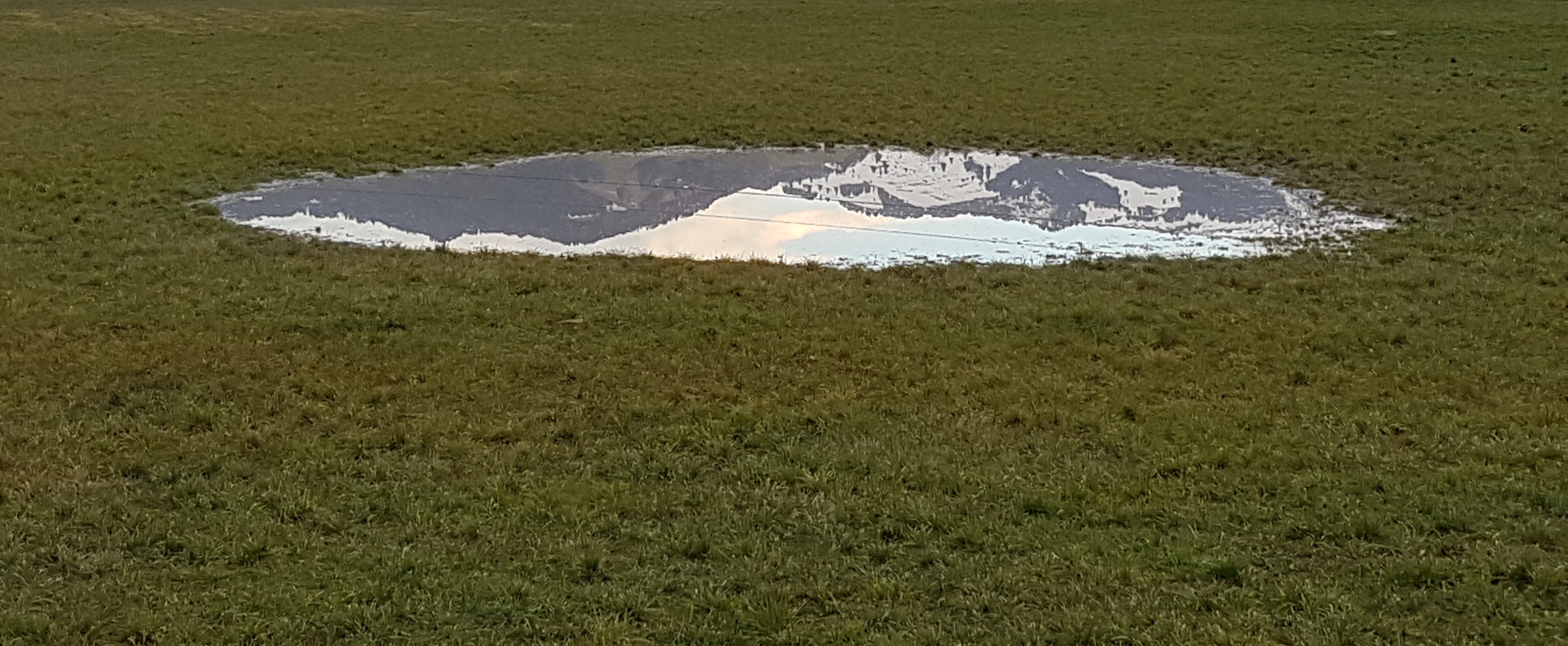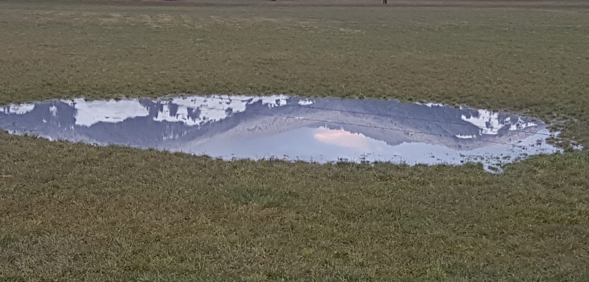 இப்படியேதான் இன்றும் வேலை முடிந்து கால்நடையாக வந்தபோது எடுத்த படம்தான் மேலுள்ளது. விரிந்த புல்தரை பனித்திரளால் சிதிலமடைந்து ஒரு செந்நிறத்தில் வீழ்ந்து கிடந்தது. அதில் ஒரு சிறு குழிவான பகுதியில் முன்னர் பனித்திரள் அடைந்துகிடந்தது. இப்போ நீர்த் தேக்கமாக உருமாறி மலைத்தொடர்த் துண்டொன்றை தனக்குள் இழுத்துவைத்துக் கொண்டிருந்தது. அப்படியே நின்றுவிட்டேன். கையை முடிந்தளவு மேலே உயர்த்தி அந்த நீர்ப்படுக்கையறையை கைபேசியால் எட்டிப் பார்த்தேன்.
