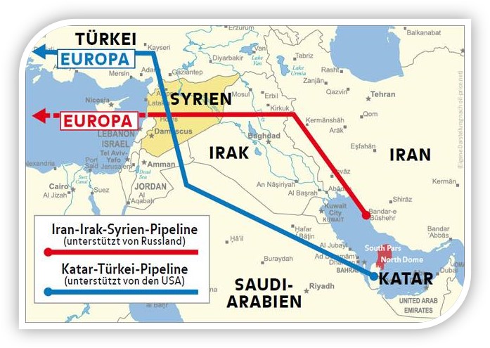 சிரியாவின் ஆட்சி மாற்றத்தில் முக்கிய பங்கு ஆற்றிய இன்னொரு காரணியானது “பைப்லைன் அரசியல்” (அதாவது இயற்கை எரிவாயுக் குழாய் அரசியல்) என சொல்லப்படுகிறது. இதன் அரசியல் ஆட்டநாயகர்கள்; துருக்கி, அமெரிக்கா, கட்டார், ஈரான் நாடுகளாகும். ரசிய-உக்ரைன் போருக்கு முன்னரே, ஐரோப்பாவுக்கு ரசியா குழாய் மூலம் வழங்கிக் கொண்டிருந்த எரிவாயு வியாபாரத்தின் இடத்தை தாம் கைப்பற்றிக் கொள்ளும் முனைப்பில் இந்த நாடகம் அரங்கேறத் தொடங்கியிருந்தது.
