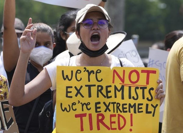 இலங்கையில் அரச எதிர்ப்புப் போராட்டத்தின் பின்னால் தீவிரவாதிகளும் புலம்பெயர் தமிழர்களும்தான் இருக்கிறார்கள் என மகிந்த கூறியிருக்கிறார். சிங்கள மக்கள் முன்னிலைப் பாத்திரம் அளித்து தொடங்கிய இந்த எழுச்சியை அவர் இலாவகமாகவே இனவாத அரசியலாக திசைதிருப்புகிறார்.